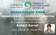 Együttműködésben az Országos Meteorológiai Szolgálattal 2020-ban az ötödik évaddal folytatódnak az OMSZ - Csopa Meteorológiai Estek a Csopa Délután programsáv keretében. 2020. február 26-án, szerdán 17 órakor kezdődik Kolláth Kornél meteorológus "Meghökkentő jelenségek az égbolton – Ízelítő a felhőosztályozás és a légköroptika témaköreiből" című ismeretterjesztő előadása a Csodák Palotájában. |