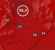 Június 16-án vasárnap az érkező front előtt még magasra emelkedett a hőmérséklet, így az országos napi maximumhőmérséklet rekord megdőlt, a fővárosi rekord pedig beállításra került. A legmagasabb hőmérsékletet Kiskunhalason mértük, ahol 35,7 fokig melegedett fel a levegő, így a 2002-ben ugyancsak Kiskunhalason mért 34,8 fok már a múlté. A fővárosban Újpesten volt a legmelegebb 34,3 fokkal, amely megegyezik az 1986-ban Krisztinavárosban mért értékkel. |
