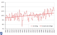 A Földön a 2016-os év hőmérsékleti szempontból rekord melegnek számít, a globális felszínhőmérséklet mintegy 0,07 °C-kal volt melegebb, mint 2015-ben. A 2016-os év hazánk területén is az átlagosnál melegebb időjárású volt, azonban csaknem egy fokkal elmaradt az eddigi legmelegebb 2014-es évtől. Homogenizált, interpolált adatok alapján 2016-ban az országos középhőmérséklet 0,8 °C-kal haladta meg az 1981–2010-es sokévi átlagot és 11,13 °C-os középhőmérsékleti értékkel 1901 óta a tizenegyedik legmelegebbnek bizonyult. A 2016-os év átlagosnál csapadékosabbnak tekinthető az 1901-től induló adatsorban. Különösen februárban és júliusban érkezett rekord mértékű csapadékmennyiség. Az éves átlagos csapadékösszeg 699 mm, mely a sokéves átlag 117%-a. Részletes elemzés olvasható az Éghajlati visszatekintőben. |