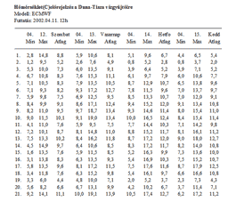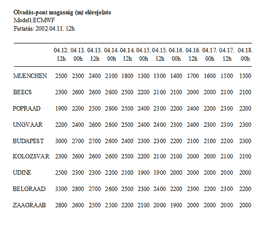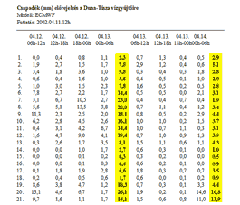 - 10 napra előre 48 óráig hat, ezután tizenkét órás bontásban a várható csapadék mennyiségét területi átlagban (1-2. táblázat)