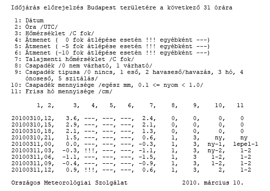 Az ország több pontján működő hőszolgáltató, villamos- és olajipari vállalatok számára speciális, részletes prognózisokat készítünk különböző időjárási elemekre. Ezeknek a vállalatoknak különösen fontos a középhőmérséklet előrejelzése tized fok pontossággal 1-2, vagy akár 10 napra előre, hiszen a sikeres előrejelzés számukra jelentős anyagi megtakarítást eredményez (3. ábra).